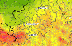 Zum Start der neuen Woche nimmt der Sommer nochmal richtig Anlauf und beschert uns die wohl heißeste Woche des Hochsommermonats August. Am Montag verbreitet sonnig bis 25 bis 29°C, örtlich +30°C möglich. Dienstag und Mittwoch dann nochmal deutlich heißer mit bis zu 33 °C, örtlich um 34°C. Das amerikanische GFS Modell legt für die Höchsttemperatur aber nochmal eine Schüppe oben drauf und prognostiziert für Mittwoch örtlich, besonders entlang des Rheins, um 35 Grad.